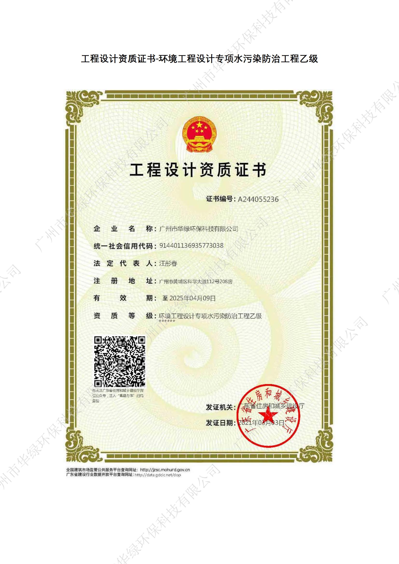 工程設(shè)計(jì)資質(zhì)證書-廢水治理乙級(jí)