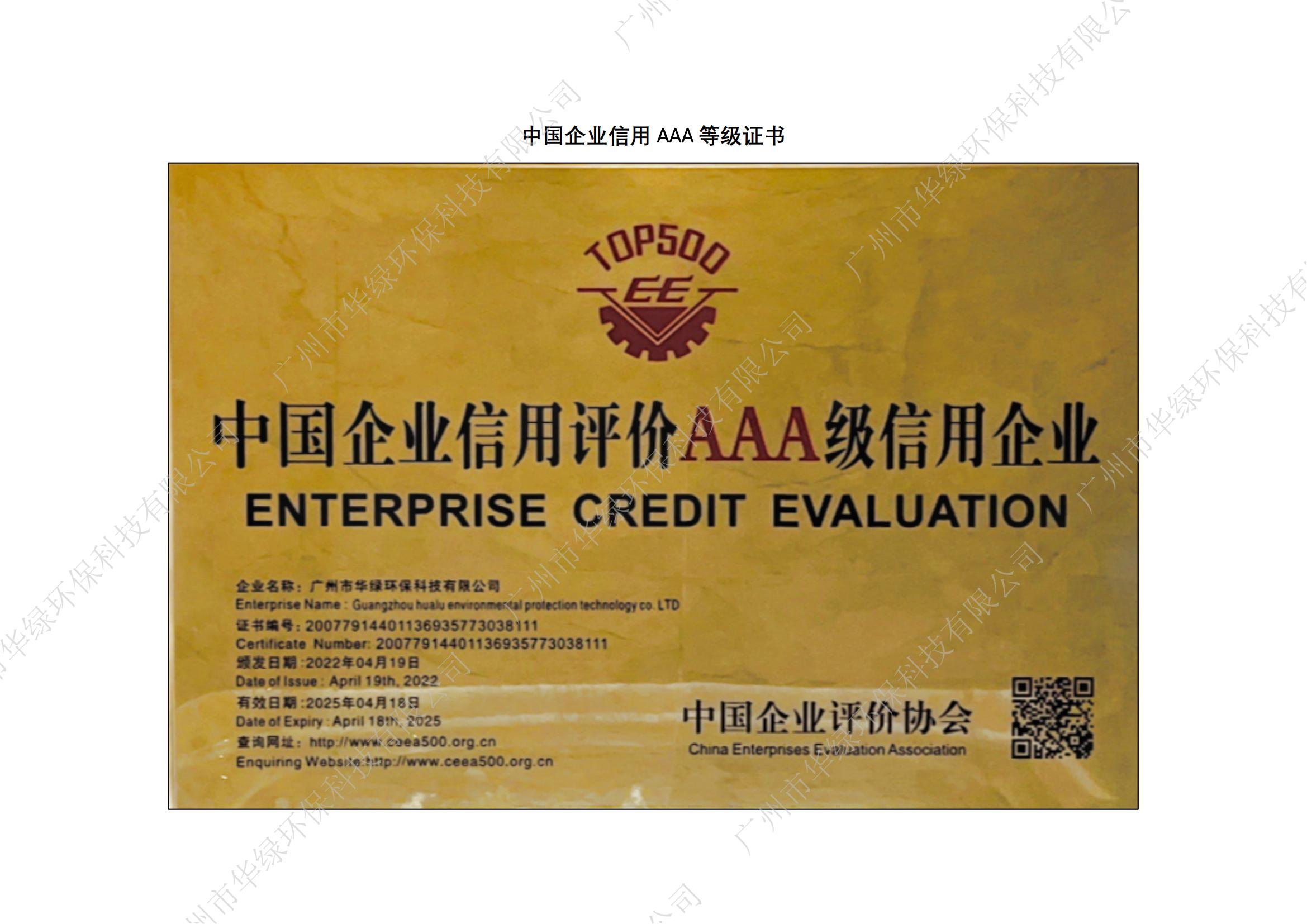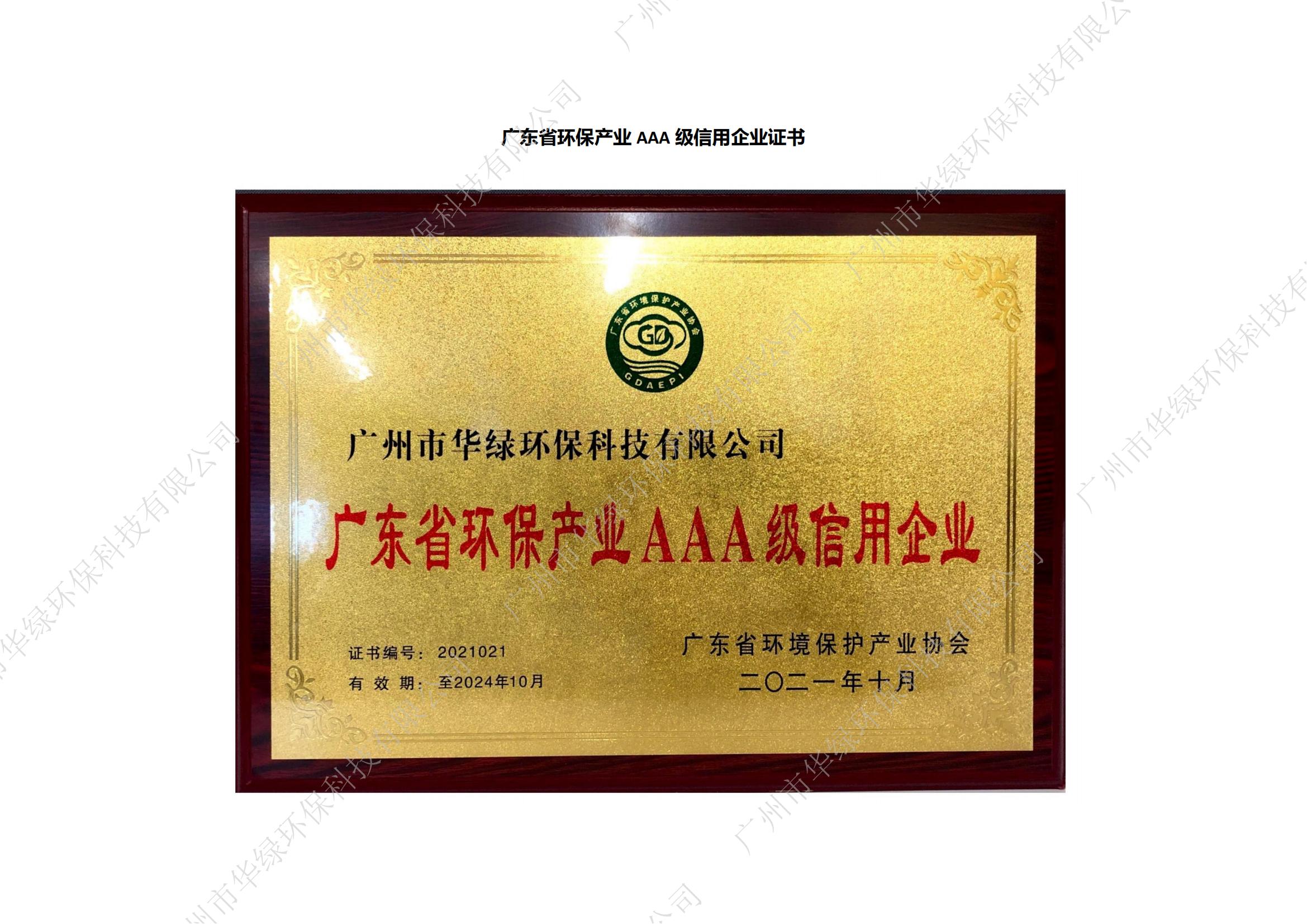 廣東省環(huán)保產(chǎn)業(yè)AAA級(jí)信用企業(yè)
